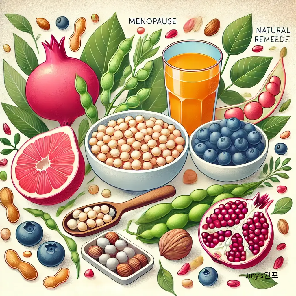 석류는 여성 호르몬 균형을 돕고, 베리는 항산화제가 풍부하여 갱년기 증상을 완화하는 데 유용합니다.